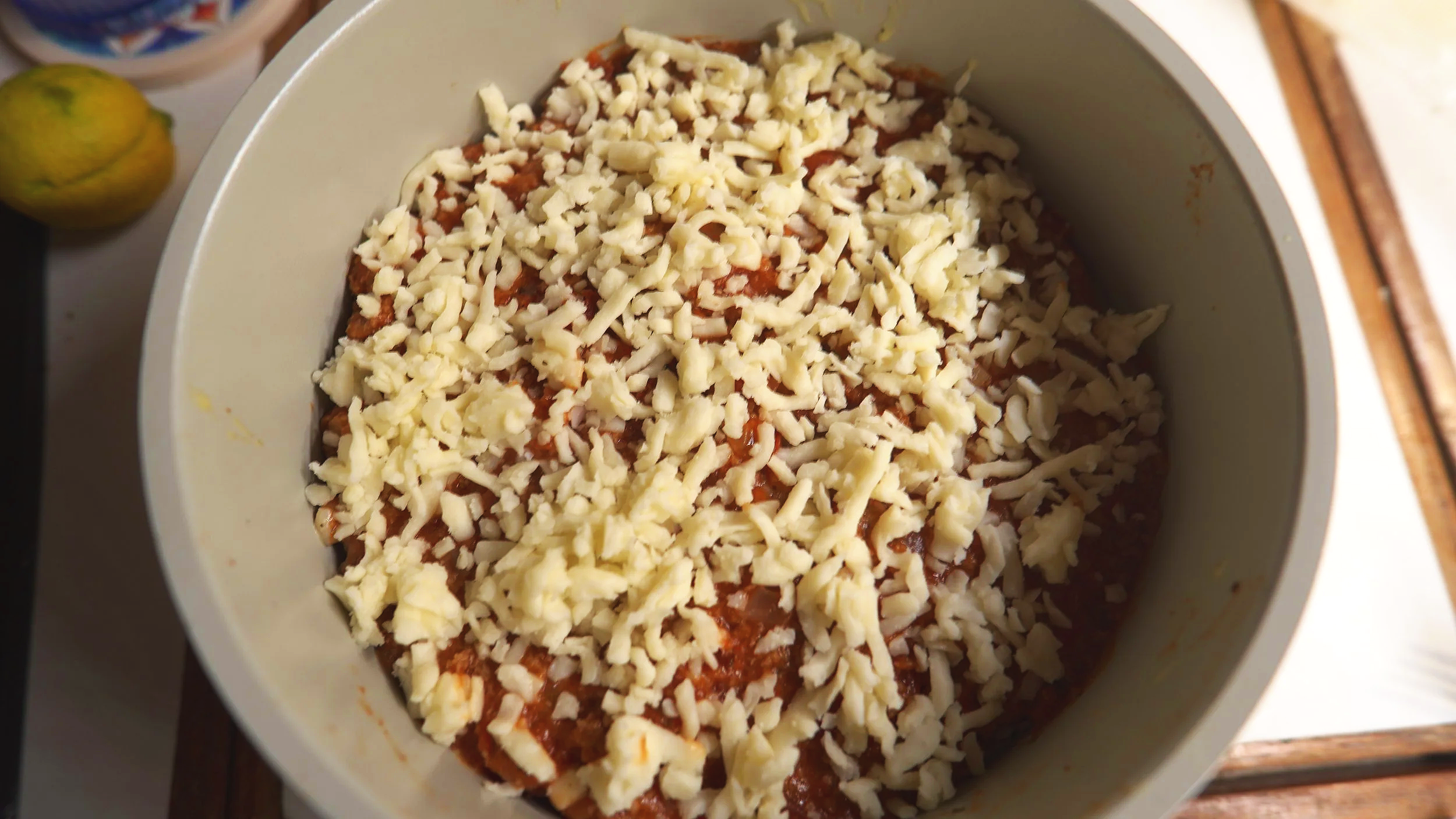 Repeat steps 6-7 making sure the last layer is the meat sauce.
